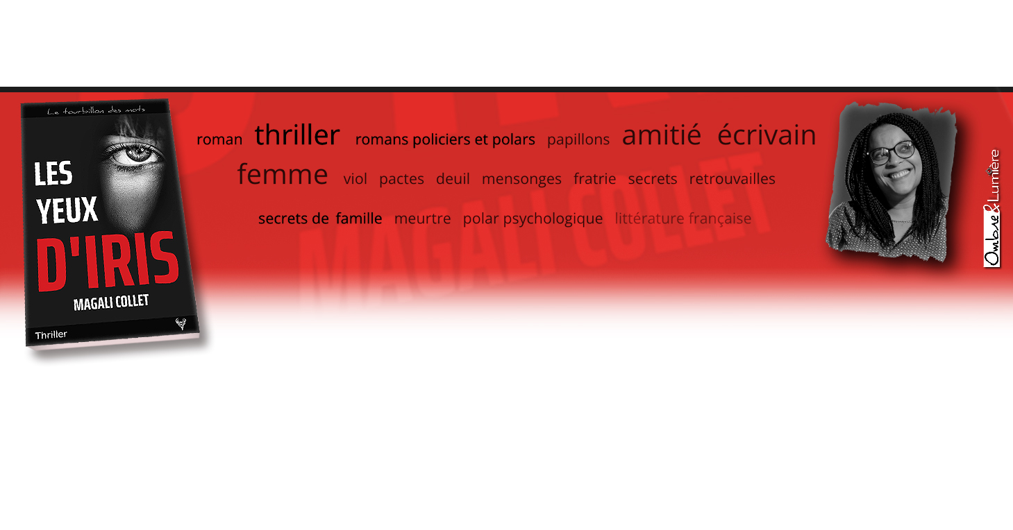 de Magali Collet Poche – 4 novembre 2021 Éditeur : Taurnada Un meurtre et un suicide. Trois hommes. Trois femmes. Des retrouvailles. Un pacte. Tout se paye, même l’amitié. Un grand merci à Joël des éditions Taurnada de m’avoir proposé ce “petit” bijou ! J’avais déjà beaucoup aimé le premier roman de Magali … Lire la suite Les yeux d’Iris